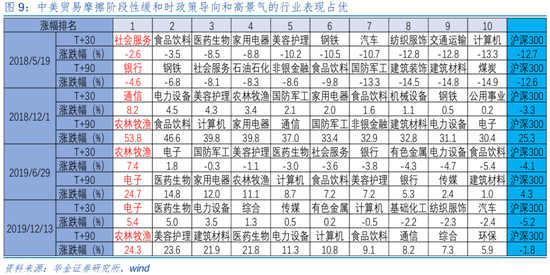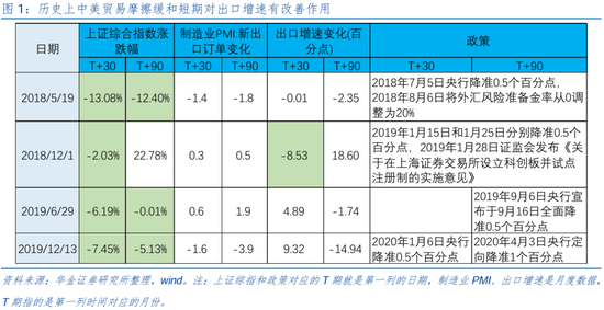 大幅降低关税可能改善短期经济增长预期。(1)2018至2019年中美贸易摩擦期间有4次阶段性缓和,分别是:2018年5月19日中美发布联合声明;2018年12月1日中美元首会晤,达成共识,停止加征新的关税;2019年6月29日中美元首会晤,同意在平等和相互尊重基础上重启经贸磋商,美方不再对中国产品加征新的关税;2019年12月13日,中美签署第一阶段经贸协议,双方达成一致,美方将履行分阶段取消对华产品加征关税的相关承诺。(2)复盘这4次中美贸易摩擦阶段性缓和对A股和出口的影响,可以看到:贸易摩擦缓和有利于改善出口,但A股表现更多受国内经济基本面和政策、外部事件等影响。一是贸易摩擦缓和后短期内出口增速均出现一定程度的改善:如2018年5月出口增速较4月基本维持,2019年7月出口增速较6月回升4.9个百分点,2019年12月出口增速较11月上升9.3个百分点。二是A股的表现主要受国内经济和盈利预期、政策和外部冲击等因素影响:首先,初2018年底外,其余三次上证综指在1个月和3个月内均是下跌的,与贸易摩擦导致国内经济和盈利下行压力较大、2018年金融去杠杆以及2020年疫情等外部冲击有关;其次,政策和流动性宽松能部分对冲经济和盈利预期偏弱导致的股市下行压力,如2019年年初央行降准和科创板的设立导致A股出现明显上行,2020年3月份以后央行降准等释放流动性导致A股出现中期上涨。(3)本次超预期的降低关税将大幅改善经济基本面的预期。一是将大幅改善之前因超高关税导致的出口大幅回落的预期:首先,加征关税对全年出口的负面影响可能大幅回落;其次,4月份出口增速依然较高,源于抢出口等因素,加征关税大幅降低后,可能改善抢出口因素消失后出口可能大幅回落的担忧,事实上从美国4月制造业PMI依然维持一定韧性等可以看出海外需求依然较高,后续出口可能维持较高增速。二是国内保增长政策大概率不会因此削弱:首先,24%的关税可能后面还有反复,中美的争端和博弈是长期趋势;其次,当前的政策以加速落地存量政策为主,政策是留有后手和余地的,政策出台的节奏是一贯的,在地产和内需等偏弱的背景下,后续积极的政策不断出台和实施是大概率。